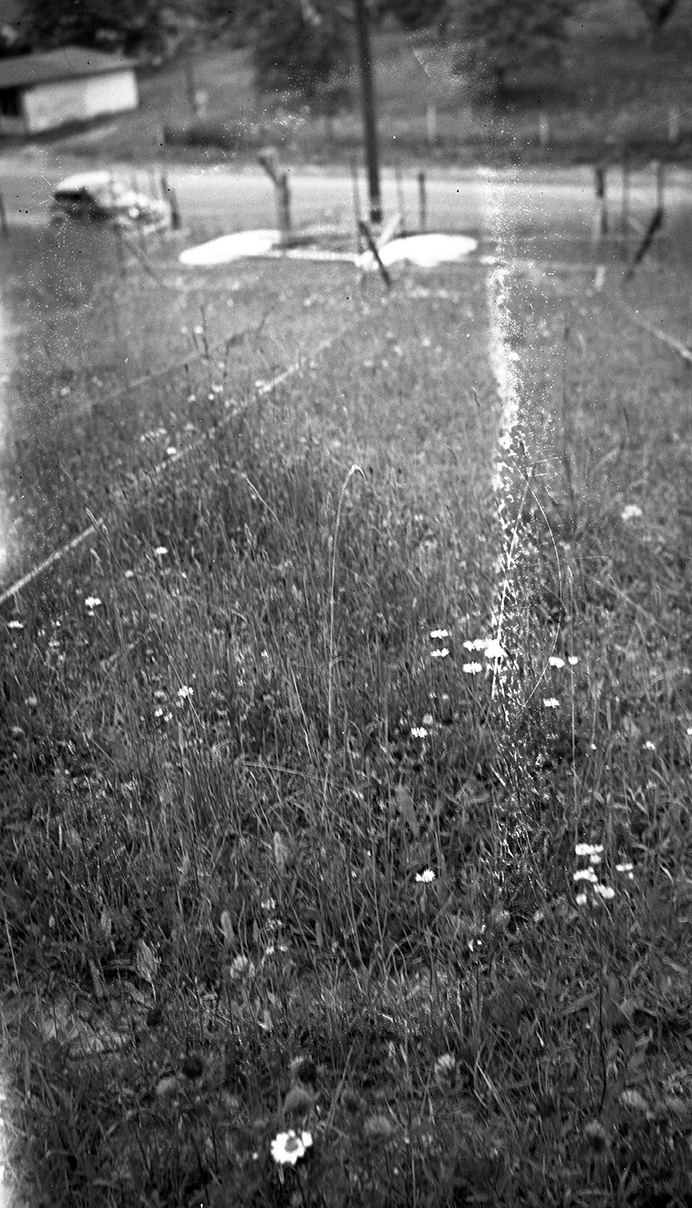 Fuzzy picture looking down plot. View of portable pasture runoff equipment.