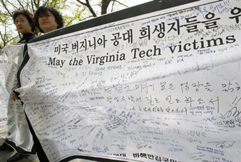 Women in Korea hold banners with condolence messages
