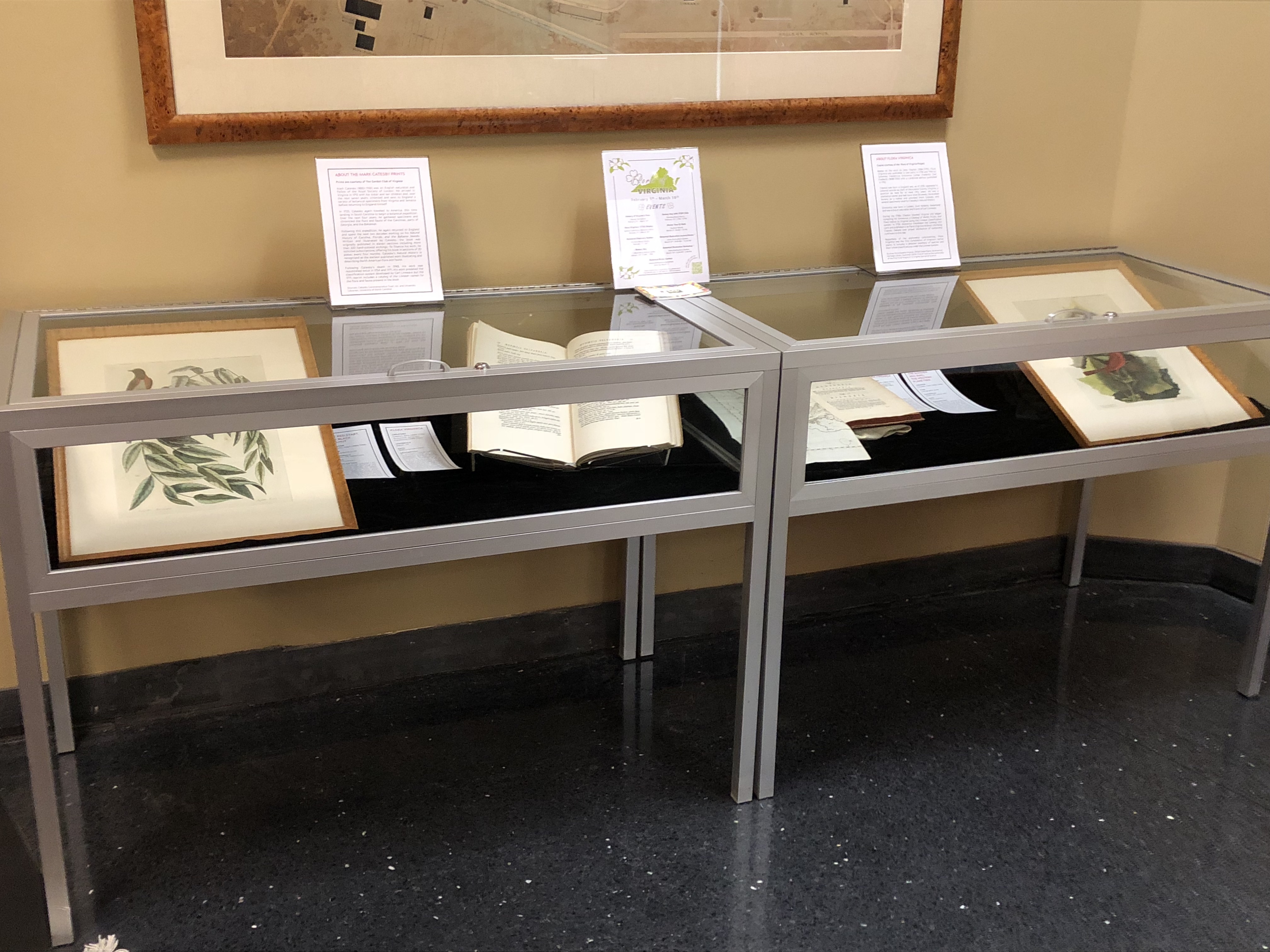 An exhibit in the Special Collections reading room from February 5, 2018 - March 16, 2018, coinciding with the Flora of Virginia exhibit at the Massey Herbarium. The display included an original Flora Virginica (1762) and a reproduction Flora Virginica (1946) made for the Arnold Arboretum at Harvard, both on loan from the Flora of Virginia Project.