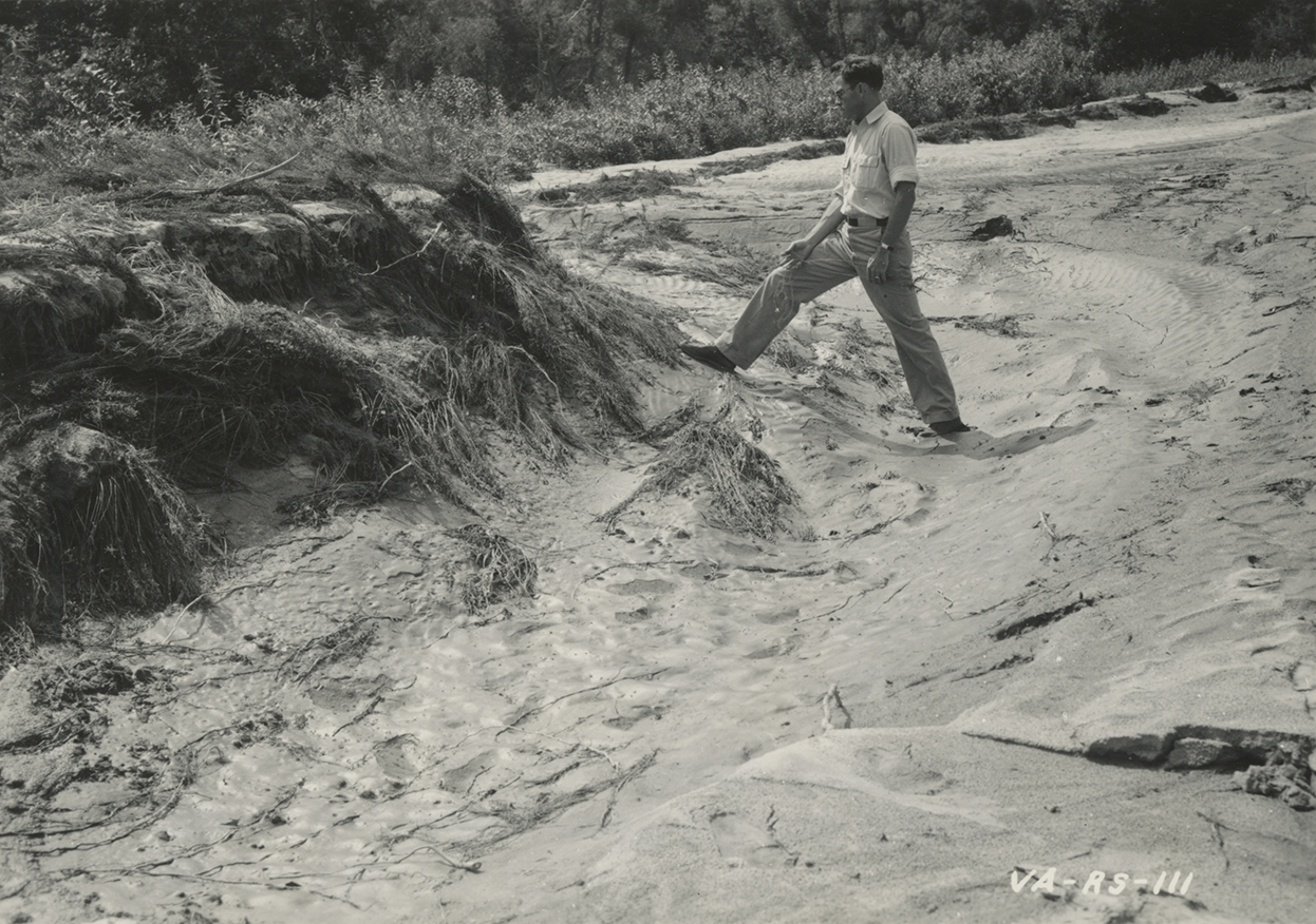 View in an approximately 700-foot gully caused by flood of August 13, 1940. Showing soil-holding ability of Lespedeza virginica.