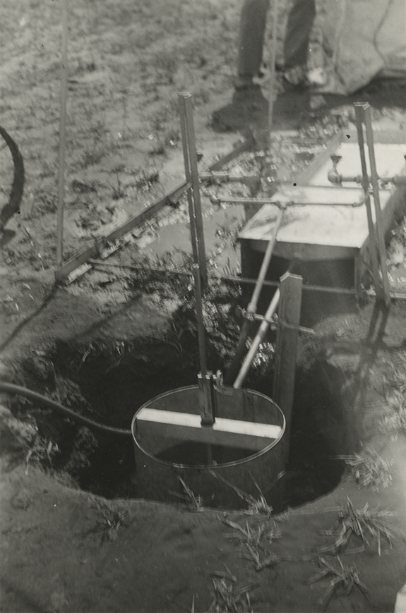 Outlet of infiltration system showing collection tank, Oklahoma.