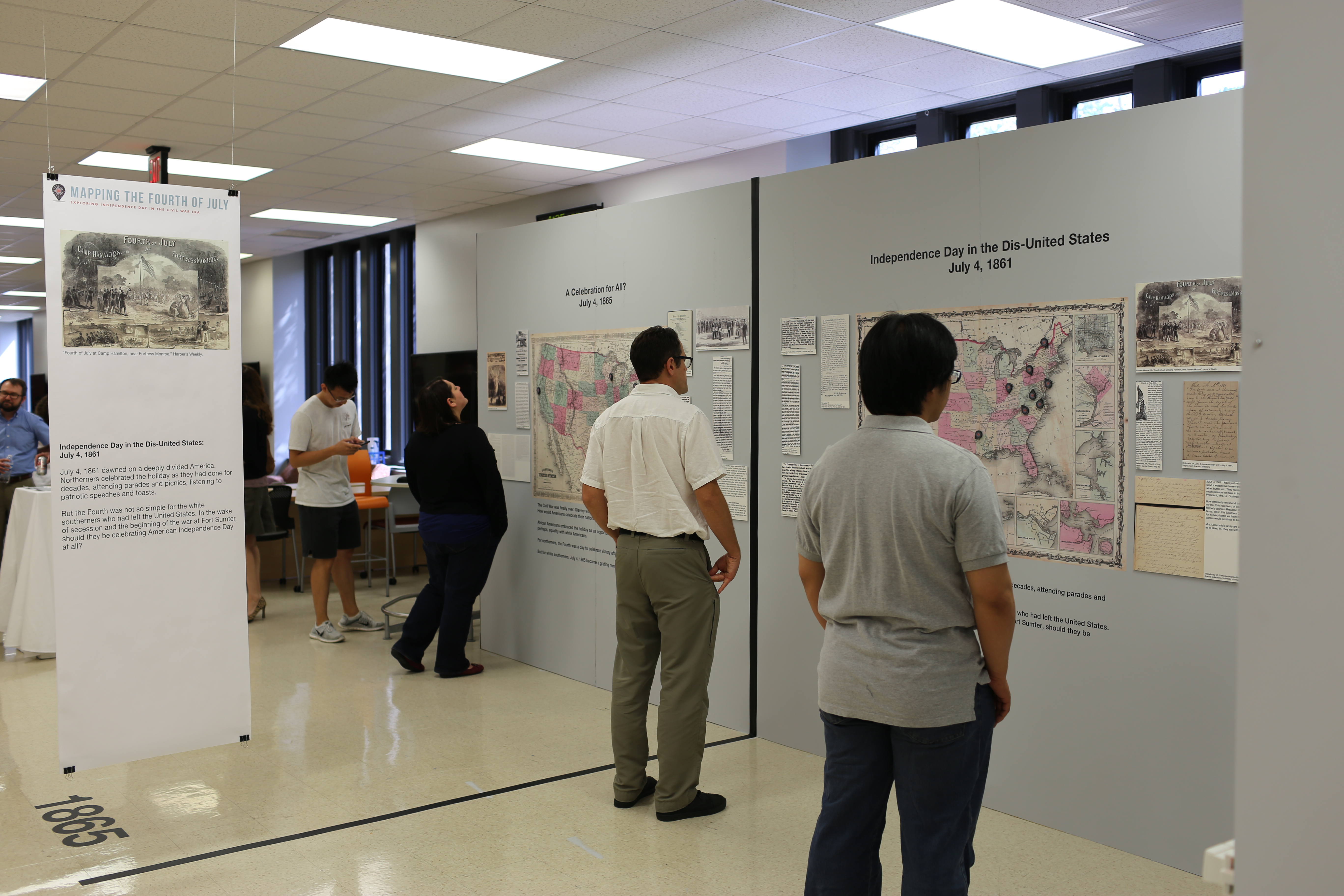 Exhibit showcasing a selection of documents from the Mapping the Fourth of July website, which allows users to read, transscribe, and analyze actual civil war era documents to help us understand the variety of attitudes toward Independence Day among the generations who lived through America's greatest conflict. 2017/05/22 - 2017/07/31