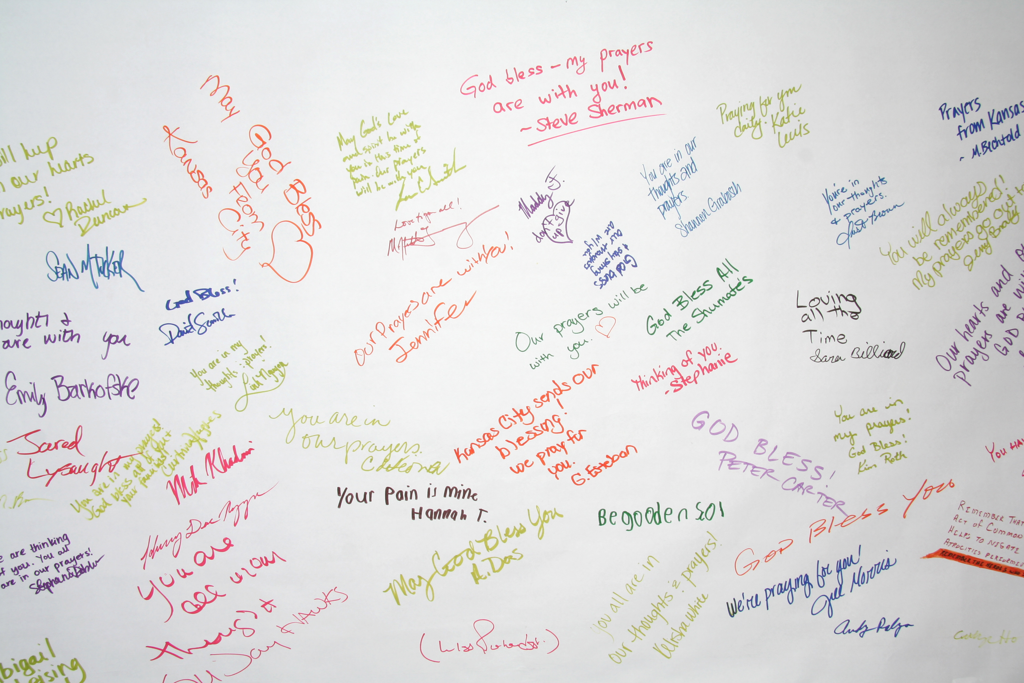 | dc.description | Two views of a white paper banner with hand-drawn artwork with signatures in bright colors | en |