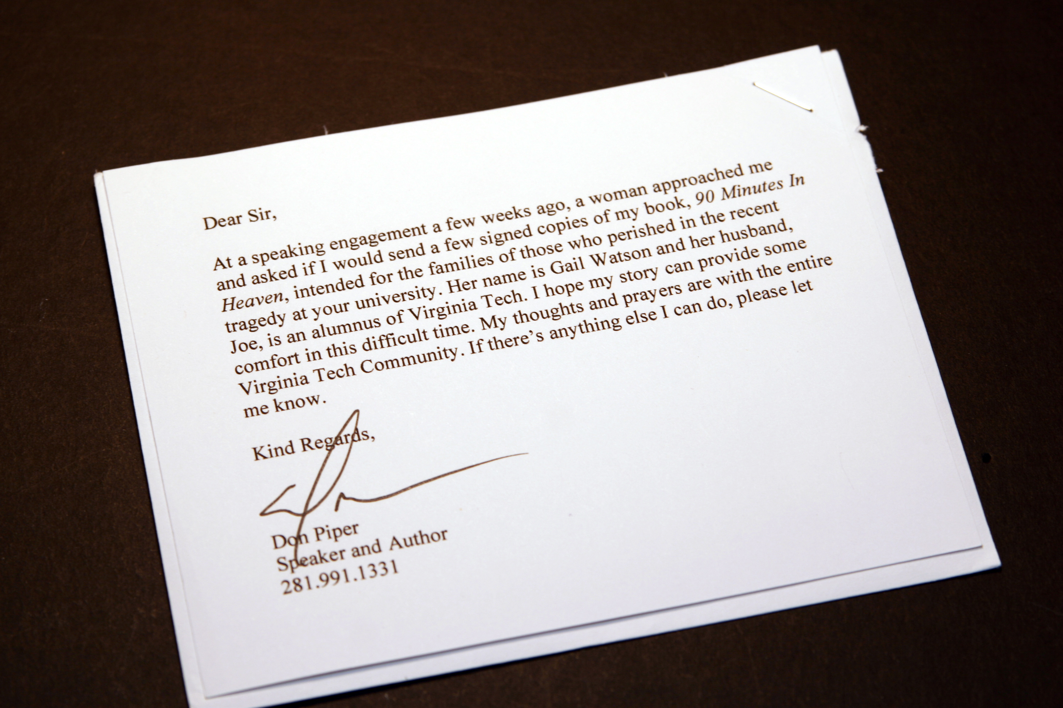 Letter from Don Piper