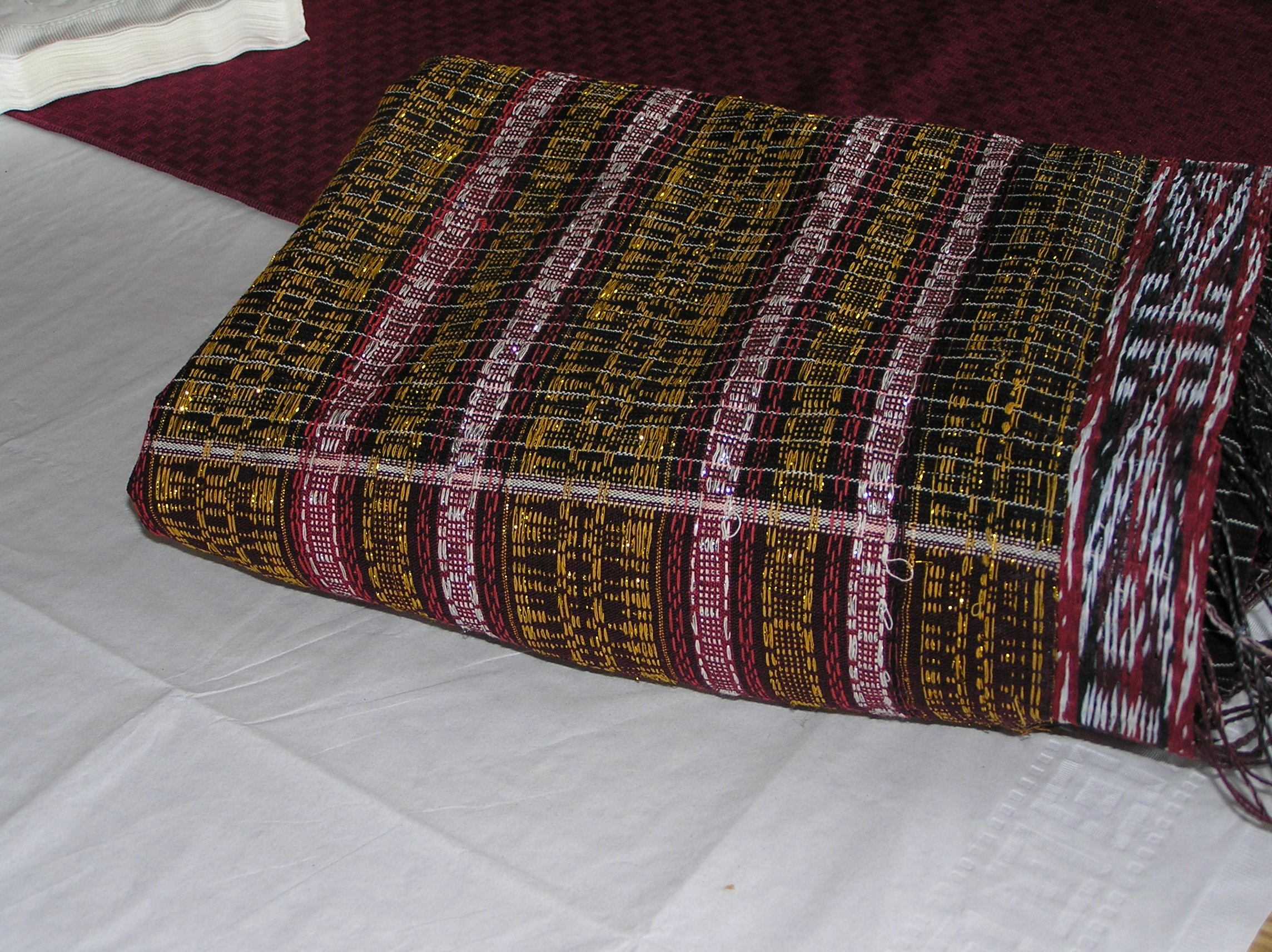 - Section of commemorative cloth showing woven stripes