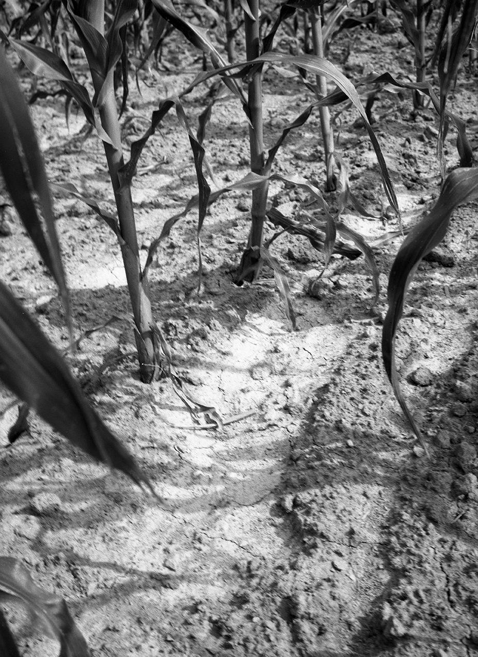 View of baked eroded surface under plowed corn.