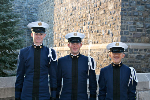 The Virginia Tech Corps of Cadets continues to partner with the Virginia Tech Football Team to highlight the colors during the pre-game ceremony at every football game. Three freshman cadets from the Highty-Tighties, the Regimental Band, were selected based on their outstanding performance for this honor at the University of Virginia game.