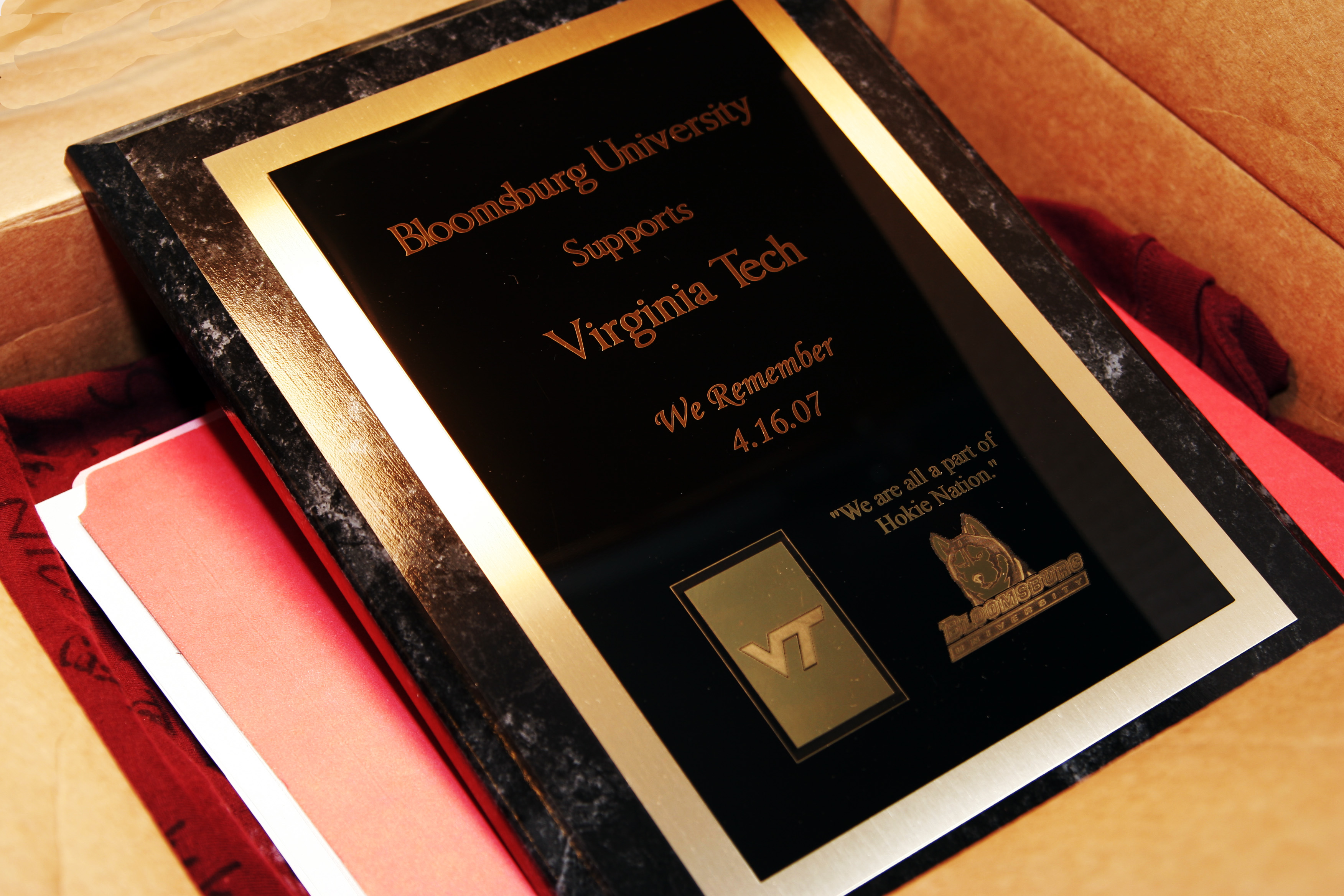 Plaque from Bloomsburg University