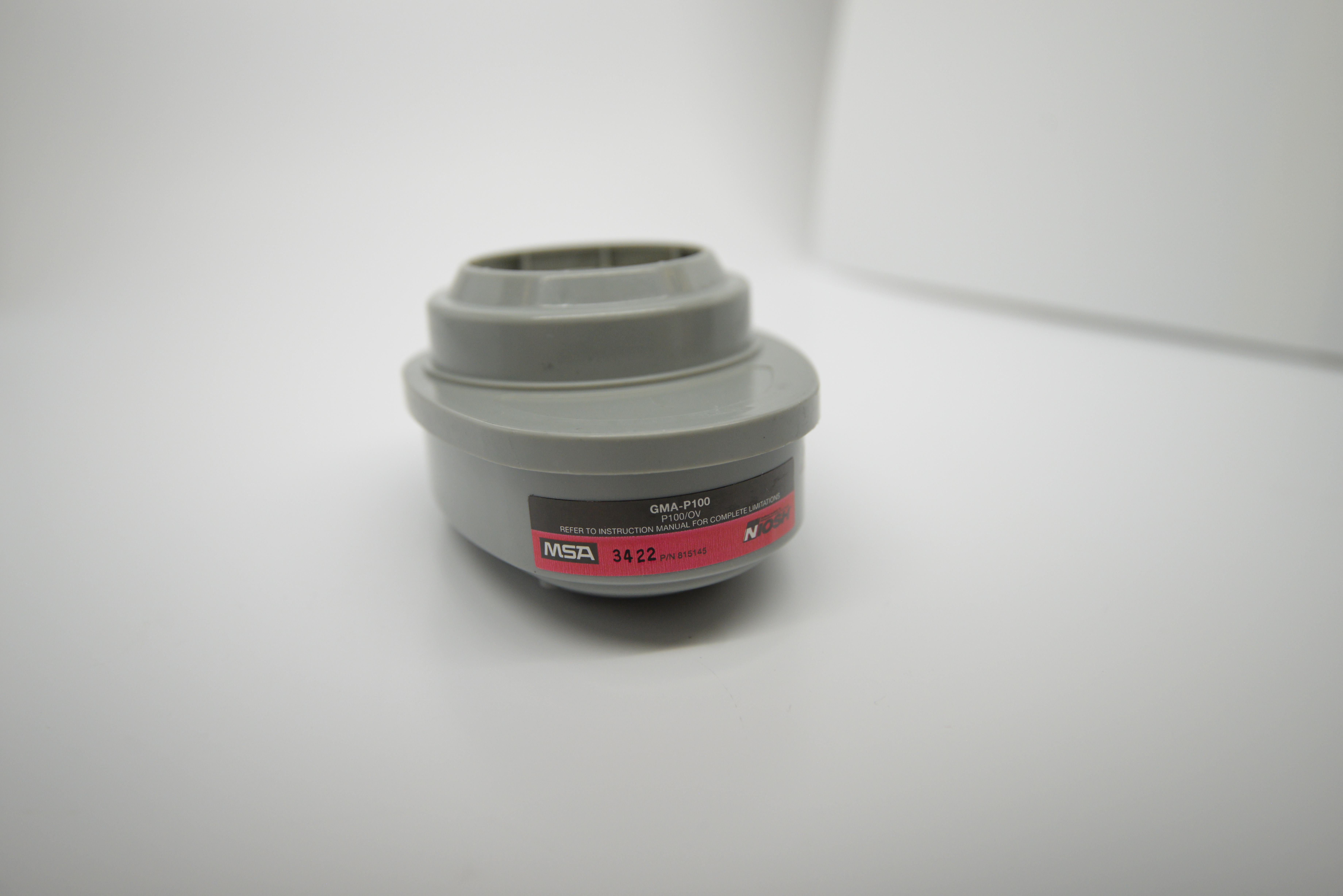 | dc.description.abstract | An MSA respirator filter cartridge with a black and pink label. It has a GMA-P100 rating. GMA/OV means that it protects against organic vapors. P100 means that it filters at least 99.97% of airborne particles and is strongly resistant to oil. | en |