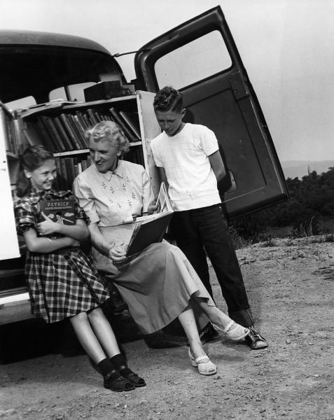 Children with County Librarian and Bookmobile