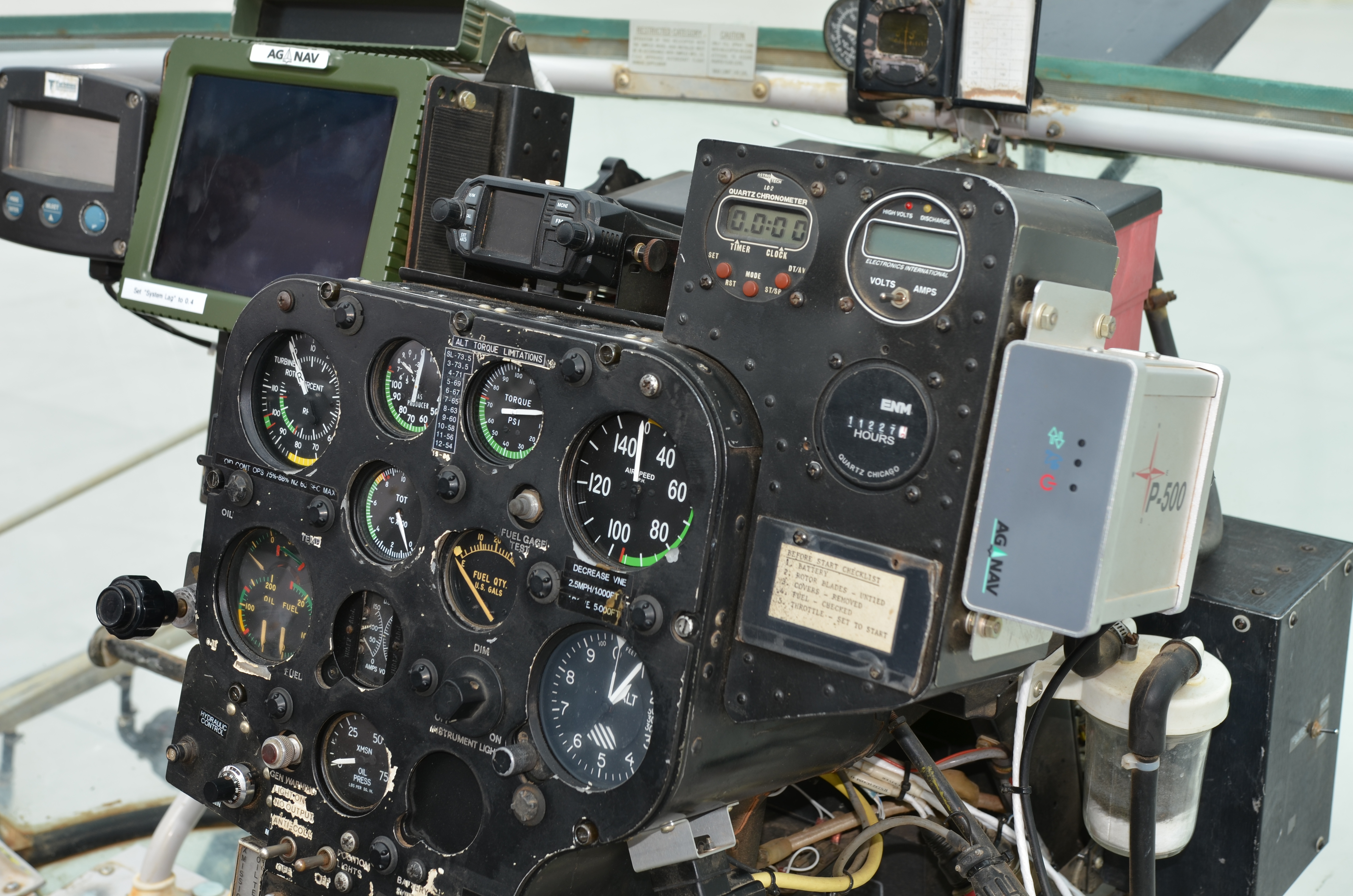 Helicopter flight control panel with AgNav Guia Navigation System and P-500 GPS Receiver.