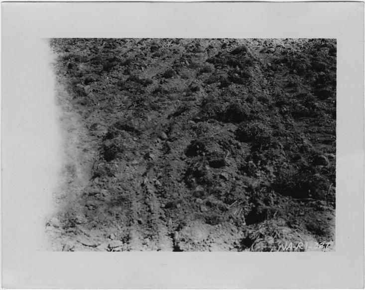 Stubble mulch - Plot prepared by TNT plow. 3" top furrow slice. 4" sub-base slice spring tooth harrow. Two week later - planter marks showing.