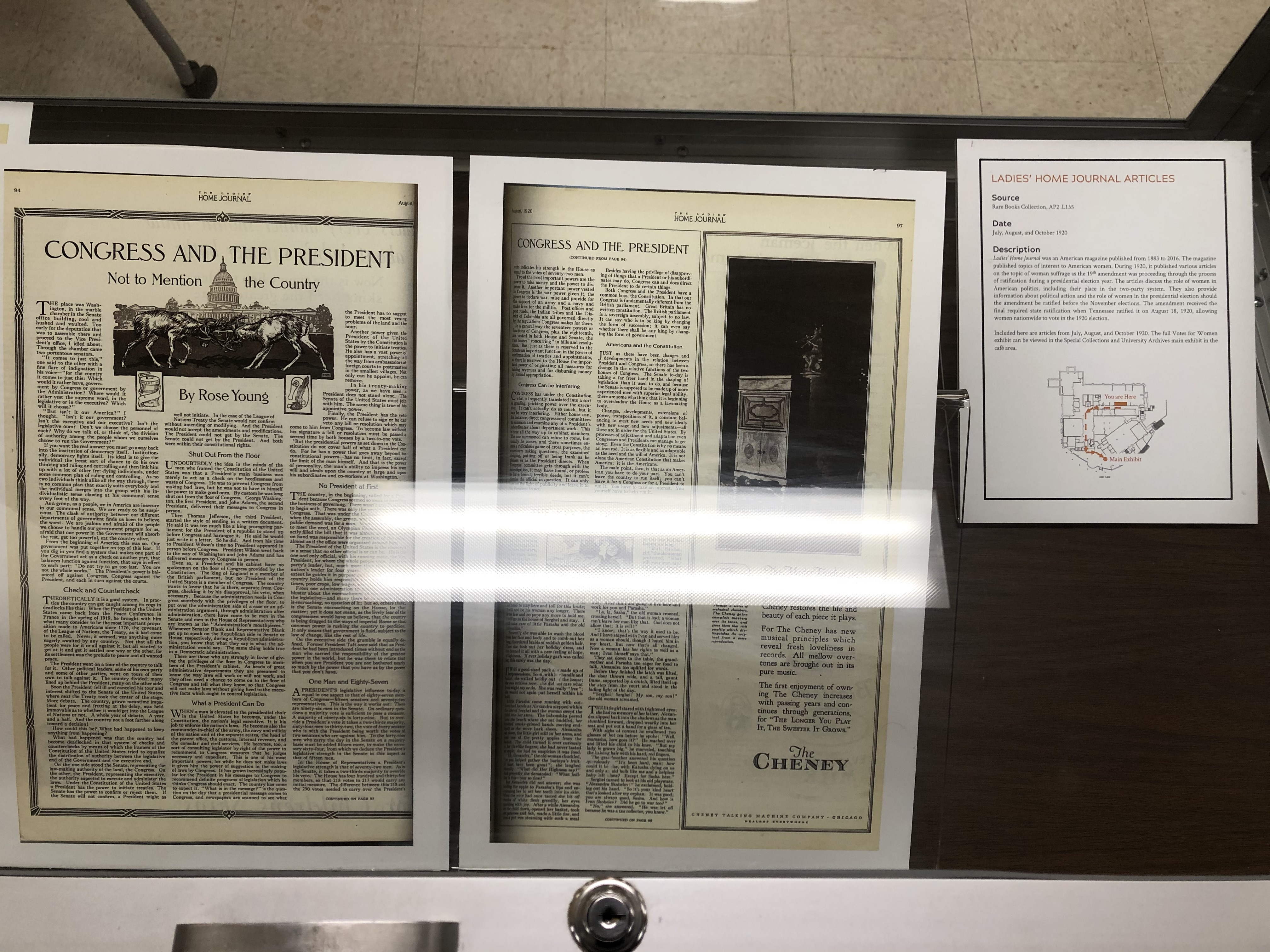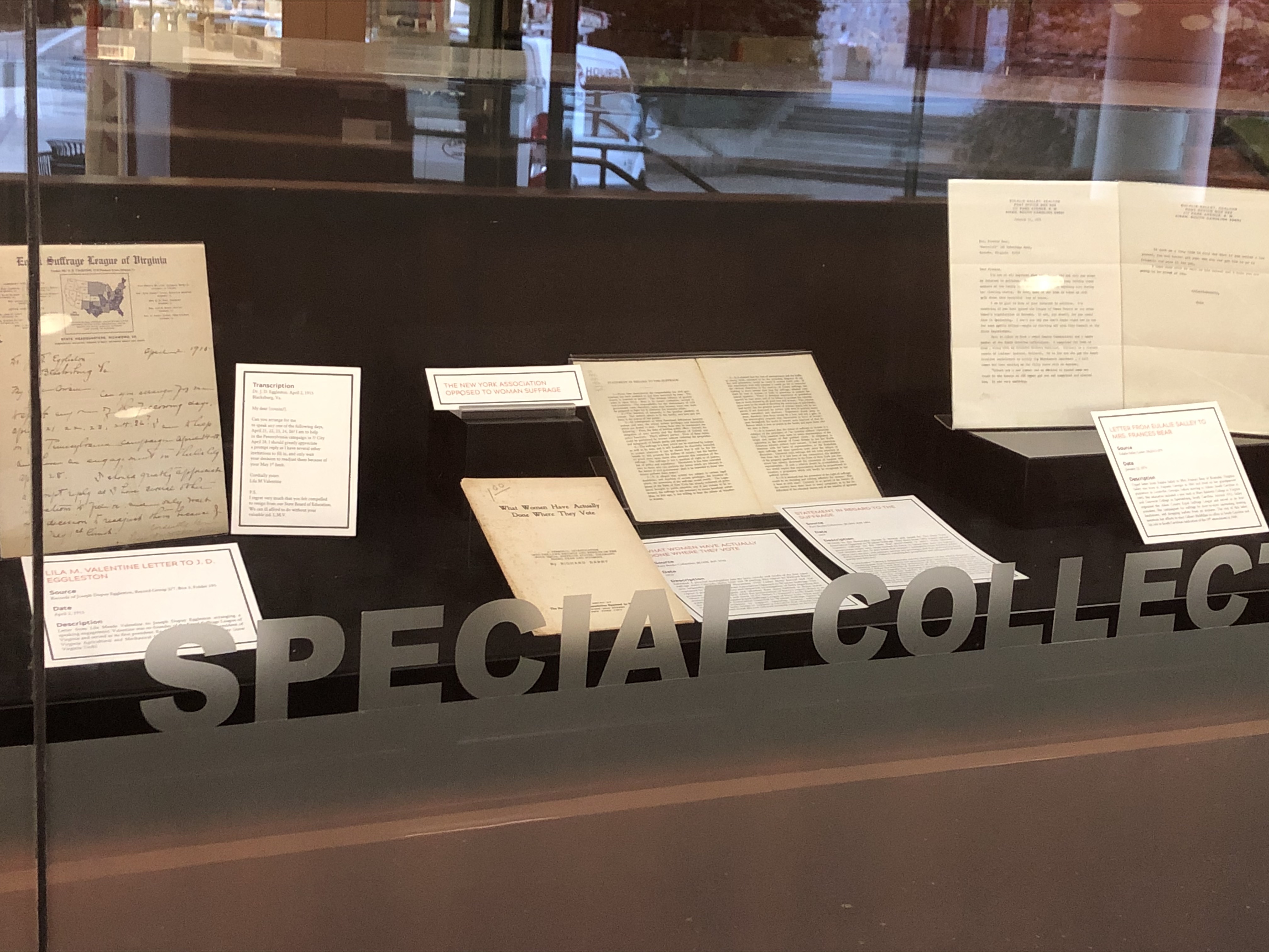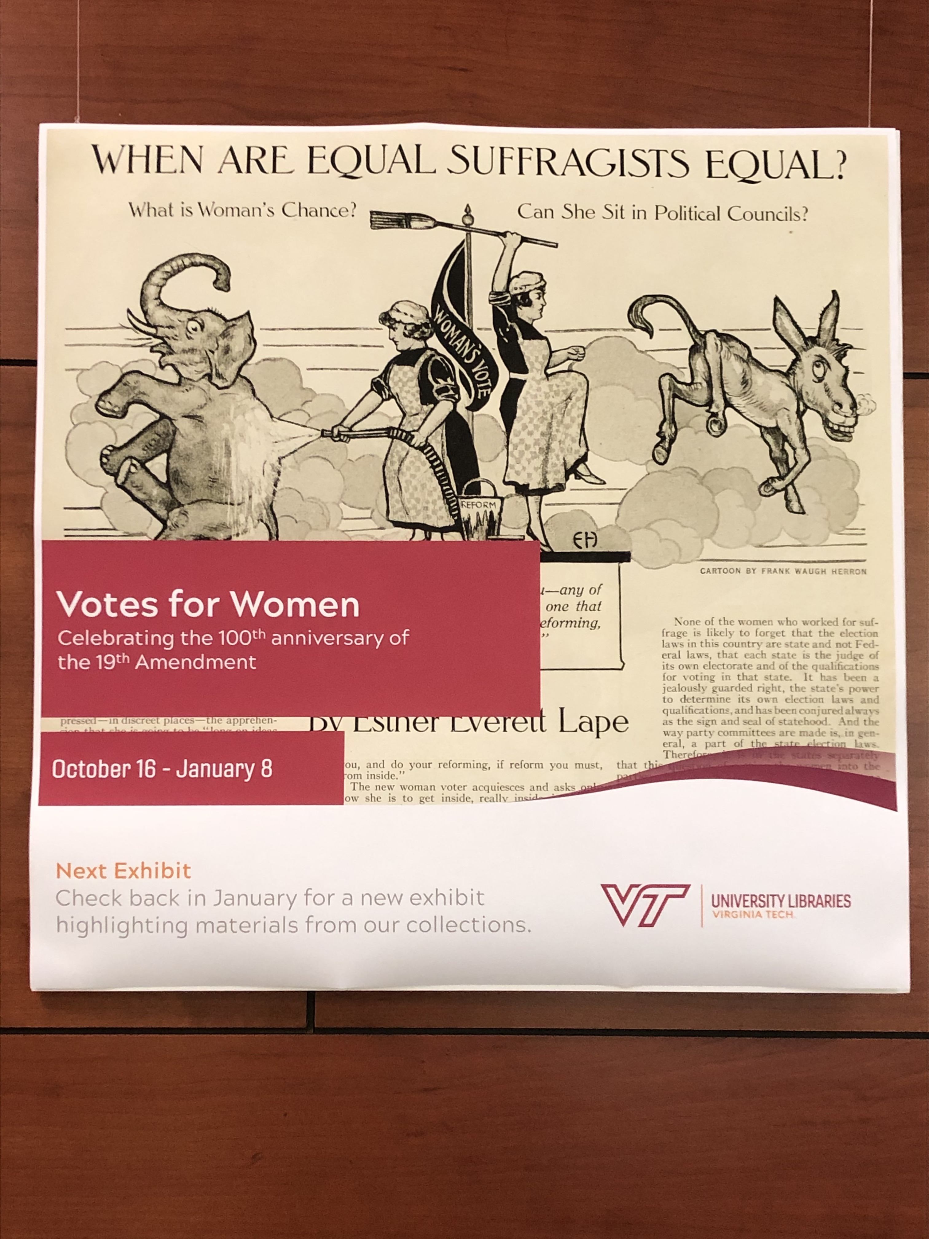 An exhibit of materials from Special Collections and University Archives about the fight for women's suffrage in the United States and the passage of the 19th Amendment to the Constitution of the United States, including items from 1884 to 1974.