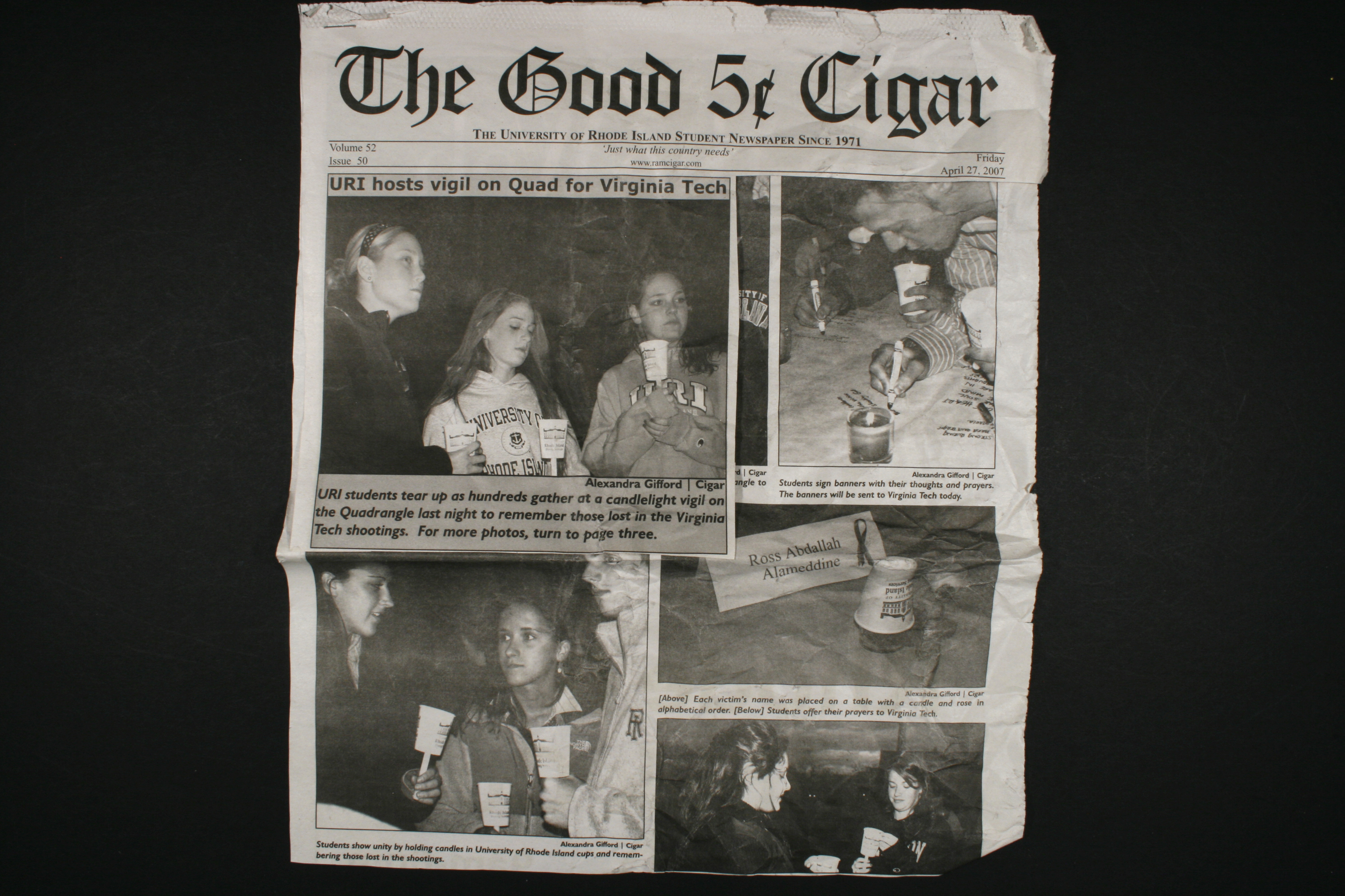 | dc.description.notes | Clipping from The Good 5 Cent Cigar, April 27, 2007, covers a candlelight vigil at the University of Rhode Island. | en |