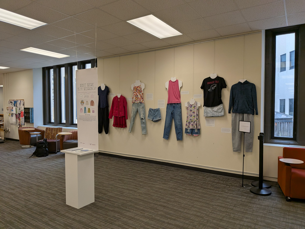 | dc.description.abstract | The 'What Were You Wearing?' Exhibit is intended to dispel the common myth that clothing can indicate consent and/or invite sexual assault. Often, victims are asked "what were you wearing" following an assault, insinuating that clothing somehow invites sexual assault.These myths and stereotypes can protect perpetrators of crime instead of supporting and validating survivors. Victims of crime are not responsible for crimes committed against them. This exhibit collects stories and outfits of local survivors to highlight that clothing is not a cause of sexual assault, hoping this display will allow spectators to consider and challenge their own beliefs about sexual violence. | en |