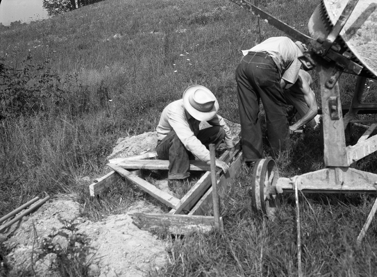 Holtan, Kirkpatrick and Shepherd installing forms for the installation of W-6 gaging station.