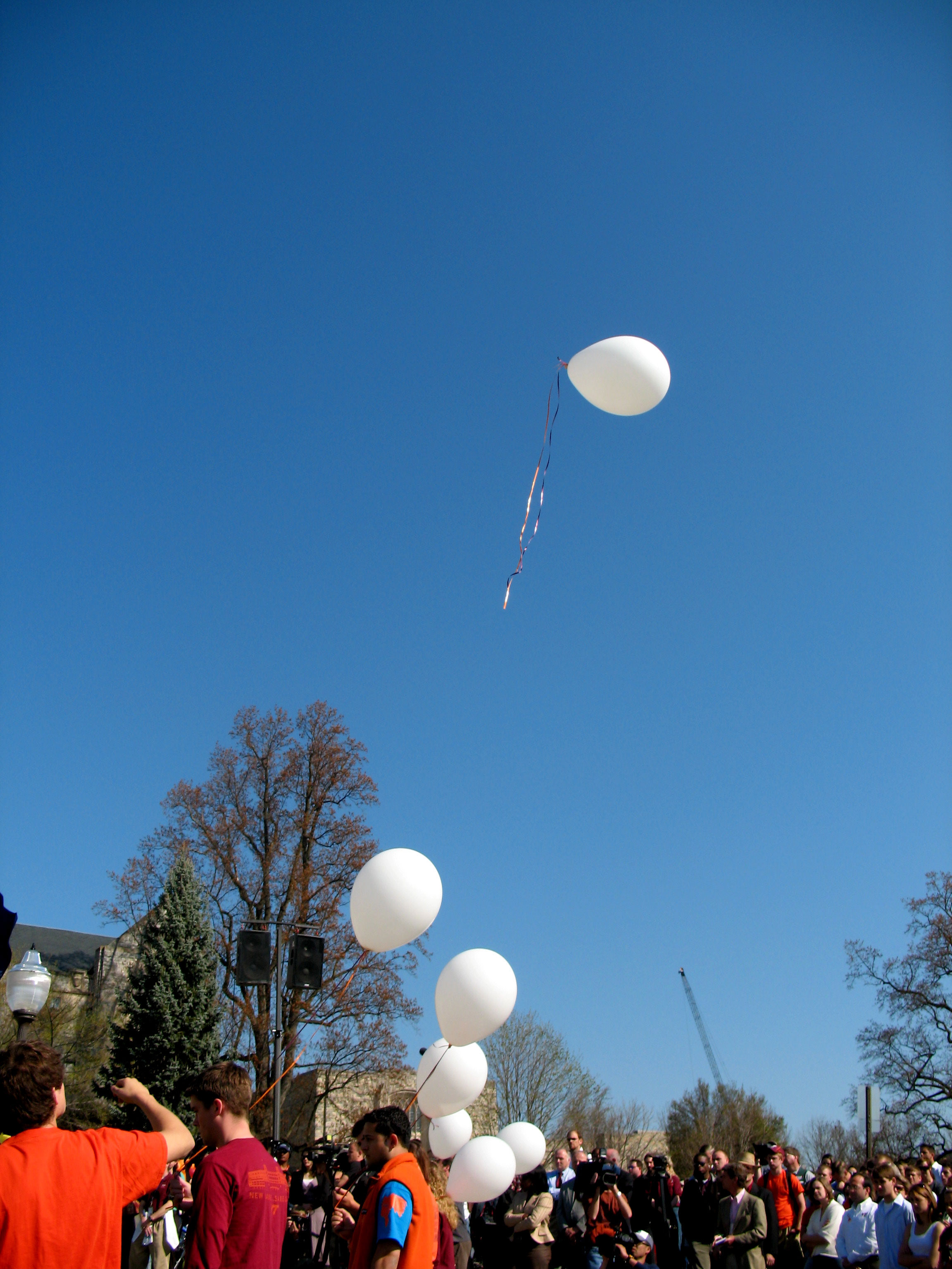| dc.description.notes | Memorial ceremony on the Drillfield. A bell tolled, a victim's name was read, then a balloon, representing each slain person, was released into the sky. | en |