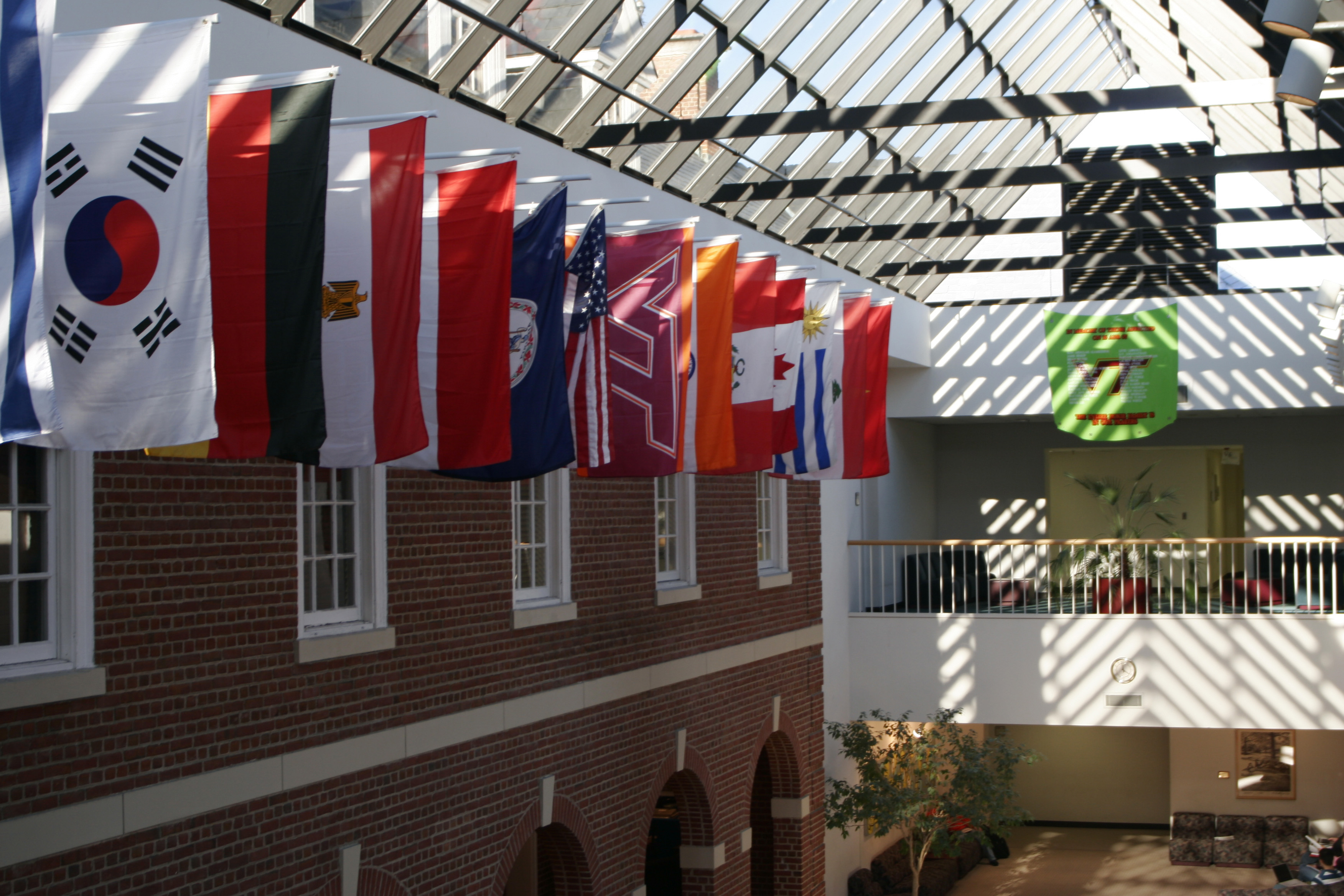One view of the car hood from Dave Butler and another view of the car hood with the other flags in Squires Student Center