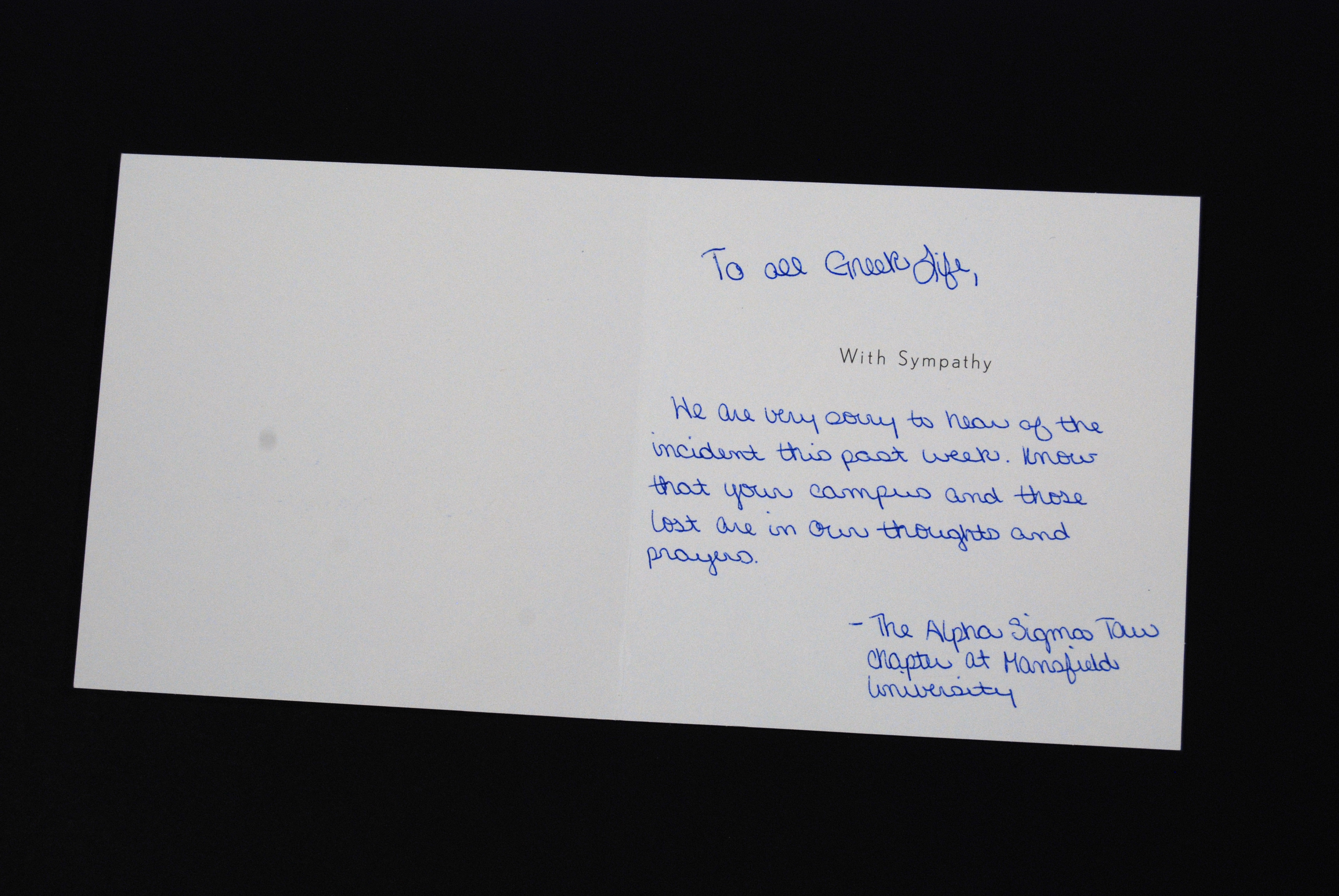 Card from Mansfield University Alpha Sigma Tau Chapter